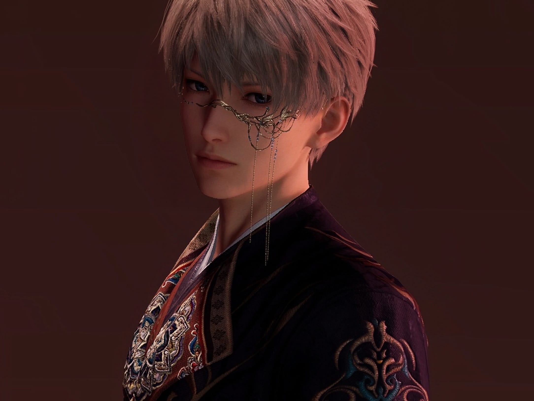 银发蓝眸的少年望着你,嘴角微扬,指尖在坠子上轻轻摩挲着。